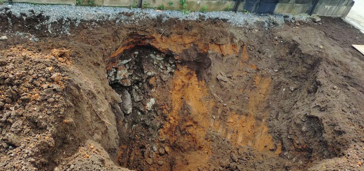地中障害物発見 投稿日: 2025年9月20日2025年10月15日by 君山 勝昭 三鷹市解体工事現場で、地中障害物が出てきました。お隣の敷地まで続いて埋まっています。 お隣さんの話だっとこの辺り一体を建売で販売した場所らしいので、元々建っていた建物をそのまま埋めた様です。
