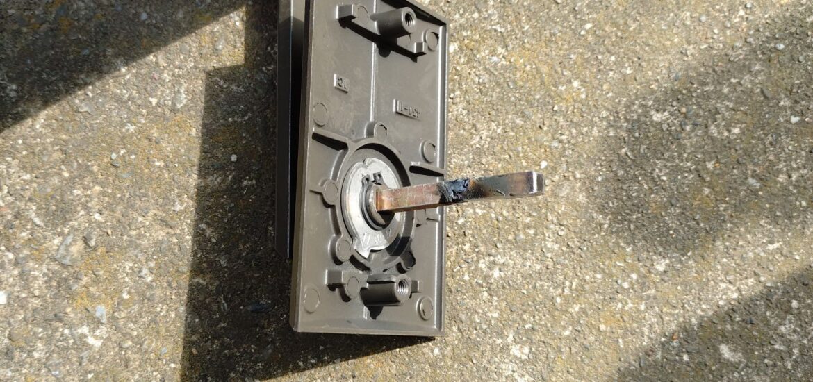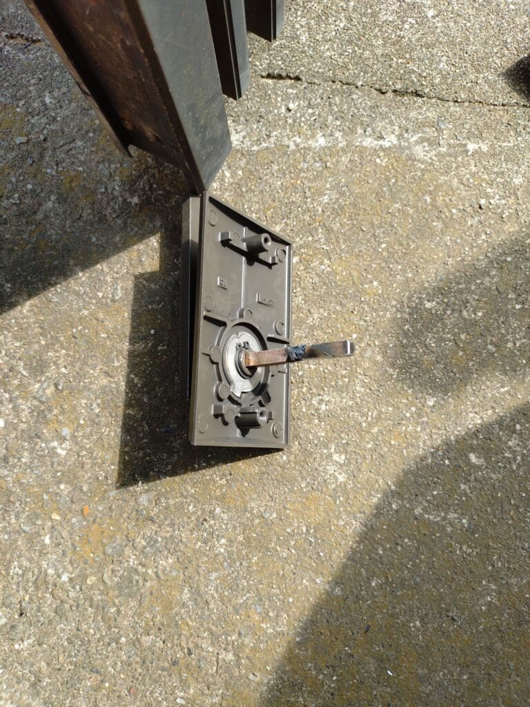 特殊加工の門扉補修(さいたま市) 投稿日: 2025年9月29日2025年10月15日by 君山 勝昭 門扉のレバーハンドルがぶらぶらになってしまい、門の開け締めが出来なくなったとのお話。 ただ、既存の門の厚みに対応している交換用レバーハンドルが見つからなく、致し方なく、現地で溶接して軸棒の加工を施し、何とかセッテイングいたしました。